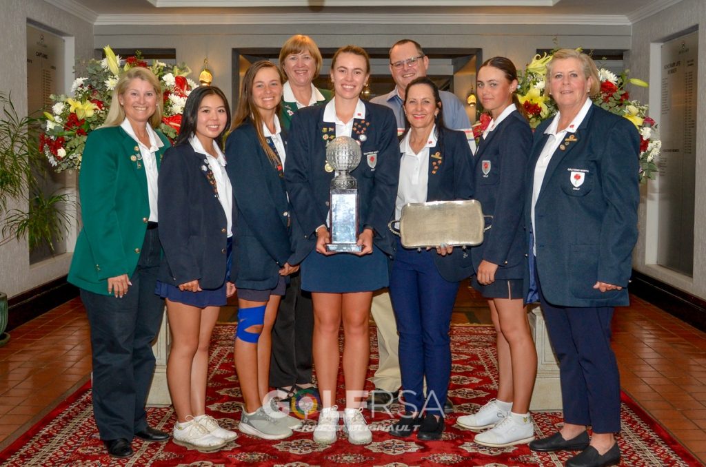 B Team – Lizemari Richter & Lameez Kourie – Silver Lakes GE, Lea van der Merwe – Zwartkop CC, Kaylee Webster – Waterkloof GC. This team was managed by Madeleine de Wet.