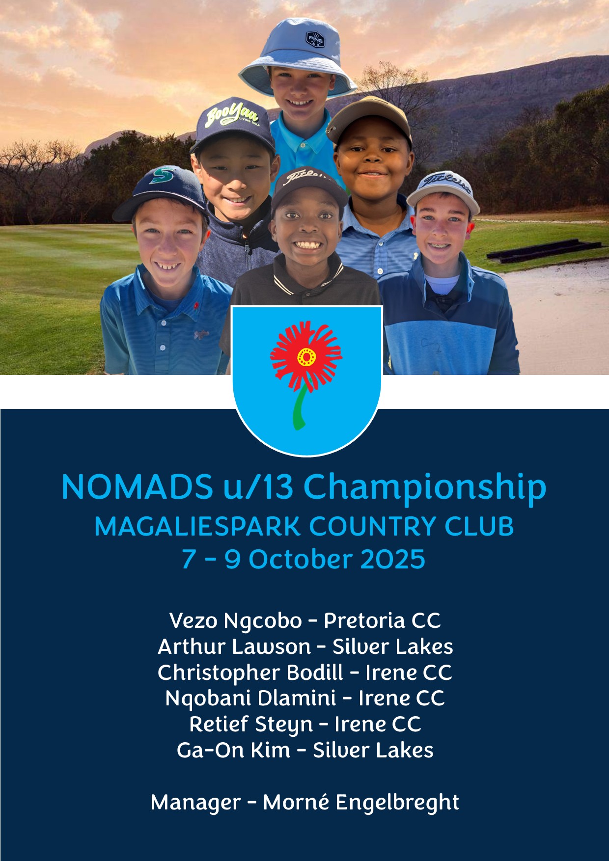 We are proud to announce the team that will be representing us at the upcoming Nomads SA u13 Championship to be played at Magalies Park Golf Club from 7 to 9 October 2025.